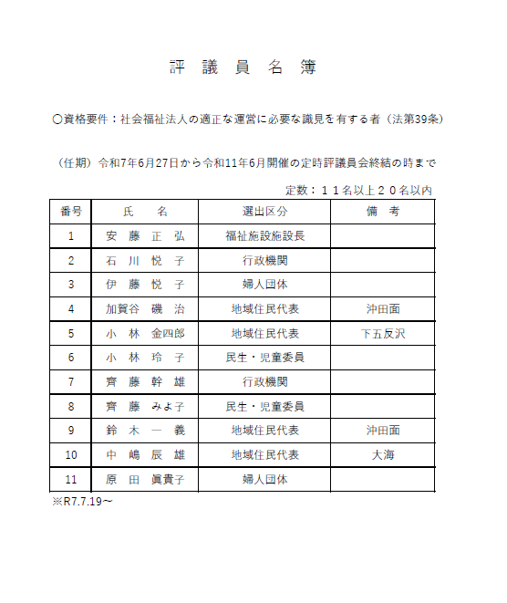 【 評議員名簿 】