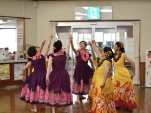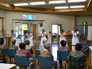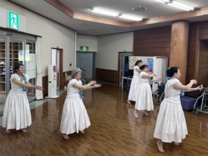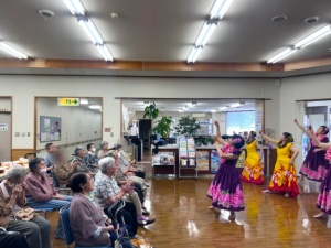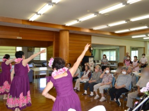 9月15日の敬老の日を前に、『ハラウフラ・ハク・レイ』の皆さんがデイサービス利用者へフラダンスを披露してくださいました。