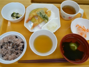 大いに盛り上がったあとは、お祝い膳に舌鼓を打ちます。赤飯やてんぷら、なますなどの特別お祝いメニューに、皆さんの目が輝いていました。