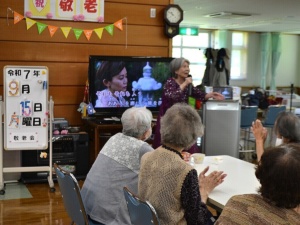 敬老会当日の9月15日(月・祝)に、デイサービス利用者の皆さんと長寿を祝いました。